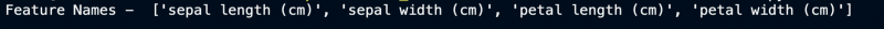 print("Virginica flower 1 - ",iris.data[100],"\n")